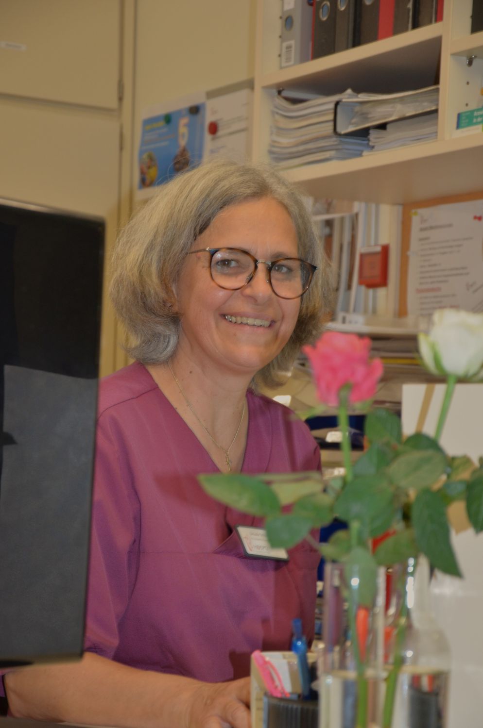 Mit großer Freude gestaltet Anke Grosch ihre erste Bilderausstellung „Lebenslinien“ im Hospiz St. Elisabeth zu Fulda.